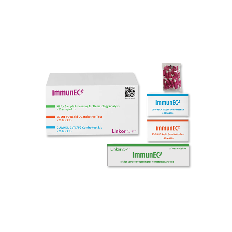 - 20 Kits de test NFS (Numérotation Formule Sanguine)- 20 Kits de test Vitamine D- 20 Kits de test Glucose & Lipides- 25 Lancettes pour prélèvement capillaire